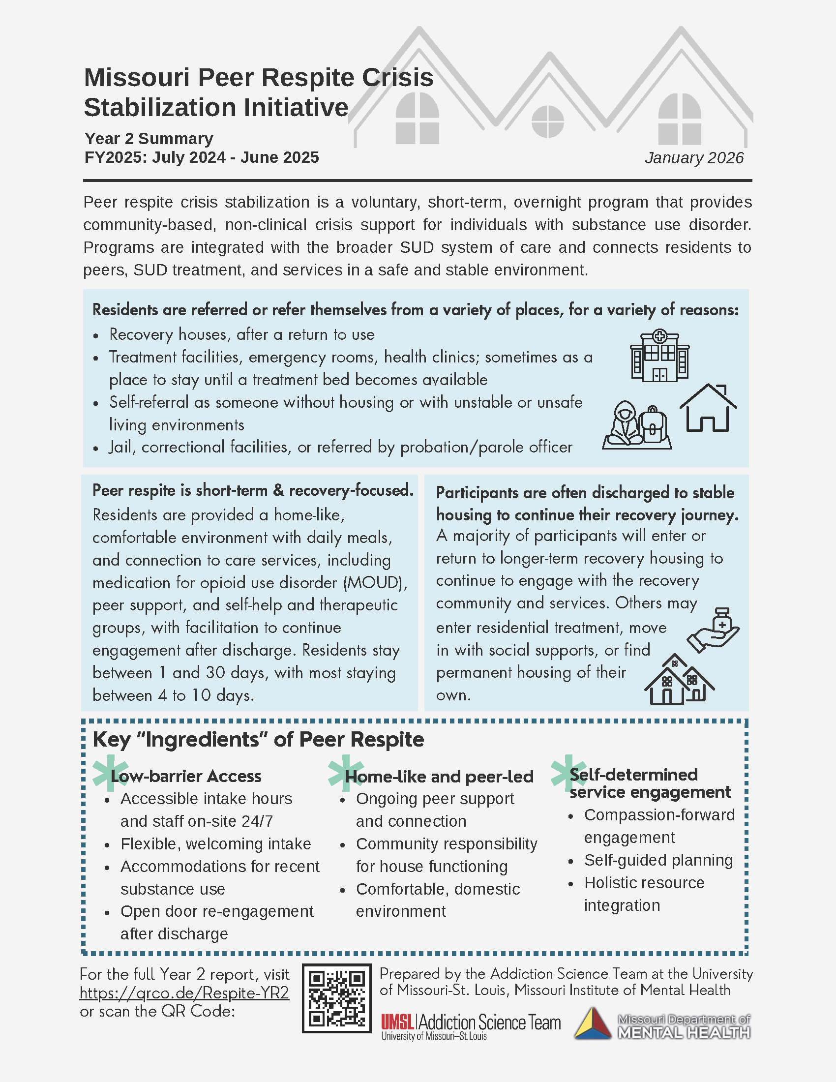 Missouri Peer Respite Crisis Stabilization: First Year Findings Report (FY 2024) - Full Report, One Page Summary