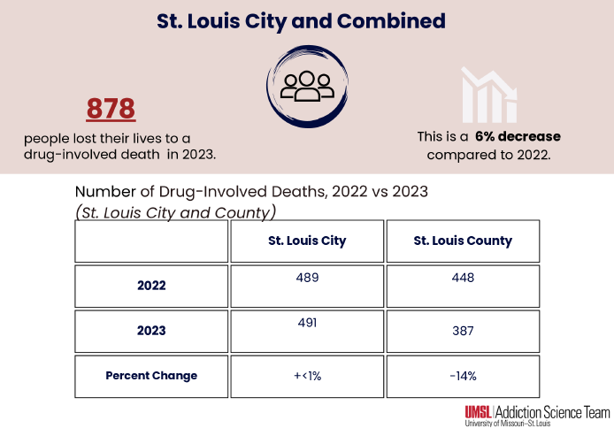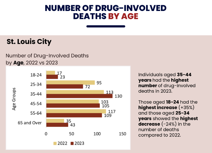 Across St. Louis City and County, there was a 2% decrease in drug-involved deaths in 2022 compared to 2021.