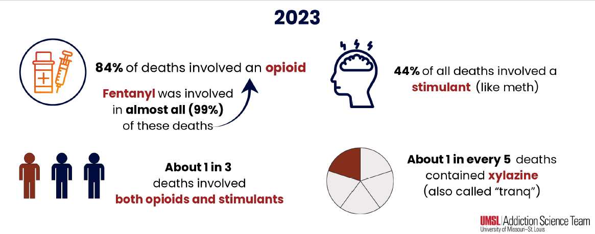 To cite this source: University of Missouri, St. Louis-Missouri Institute of Mental Health Addiction Science Team, St. Louis City and St. Louis County Medical Examiners. (2022). St. Louis City and County Drug-Involved Deaths Report 2021. (2020-2021). Retrieved from https://www.mimhaddisci.org/missouri-overdose-data